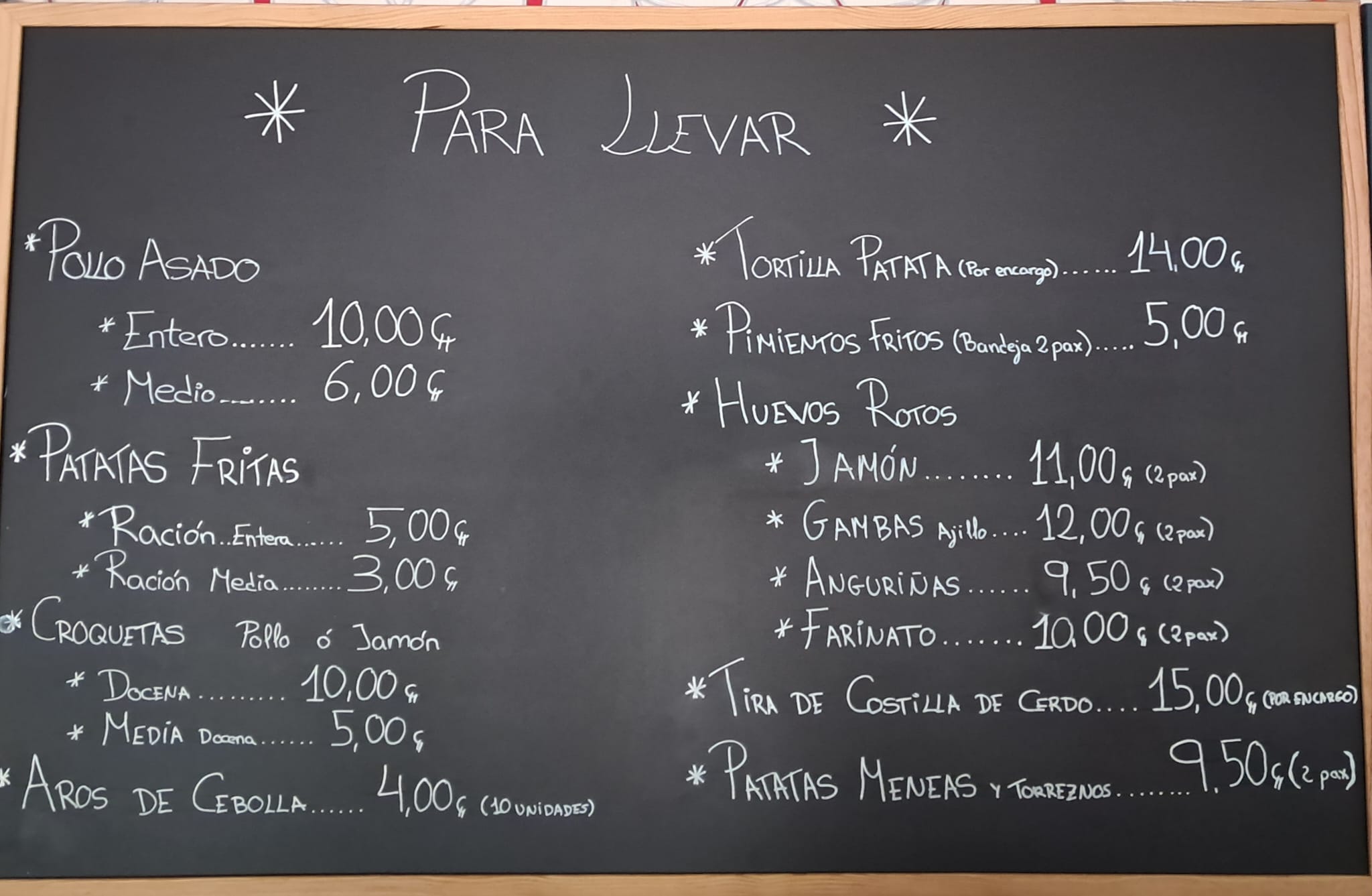 Su especialidad es el pollo asado, pero encontrarás muchos otros platos exquisitos como el bacalao a la bras, costilla de cerdo, huevos rotos, tortilla de patata, croquetas,…